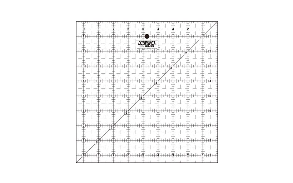 "Olfa quiltliniaal met inch belijning. Door de unieke ""frost""-laag op de liniaal is de zwarte belijning zeer goed zichtbaar op zowel donkere als lichte ondergronden. Tevens zorgt deze laag voor een goede antislip grip."