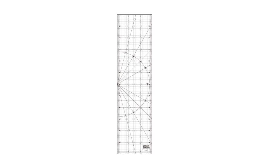 "Olfa quiltliniaal met centimeter belijning. Door de unieke ""frost""-laag op de liniaal is de zwarte belijning zeer goed zichtbaar op zowel donkere als lichte ondergronden. Tevens zorgt deze laag voor een goede antislip grip."