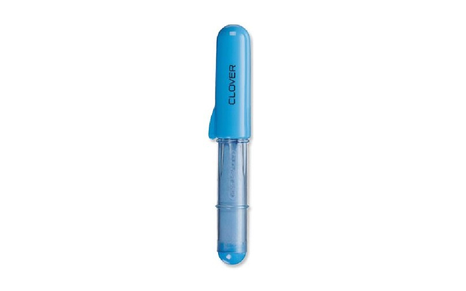 Een "lippenstift" met een radeer wieltje waar blauwe kalk uit komt, gemakkelijk te verwijderen.