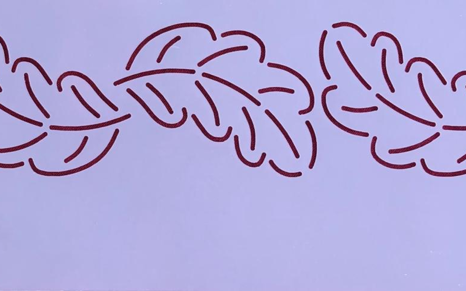 Het getoonde ontwerp is een sjabloon dat is gemaakt van flexibel semi-transparant Mylar plastic dat wordt gebruikt voor het markeren van quilts en andere handwerkprojecten. Grootte: 2 inch leaf border