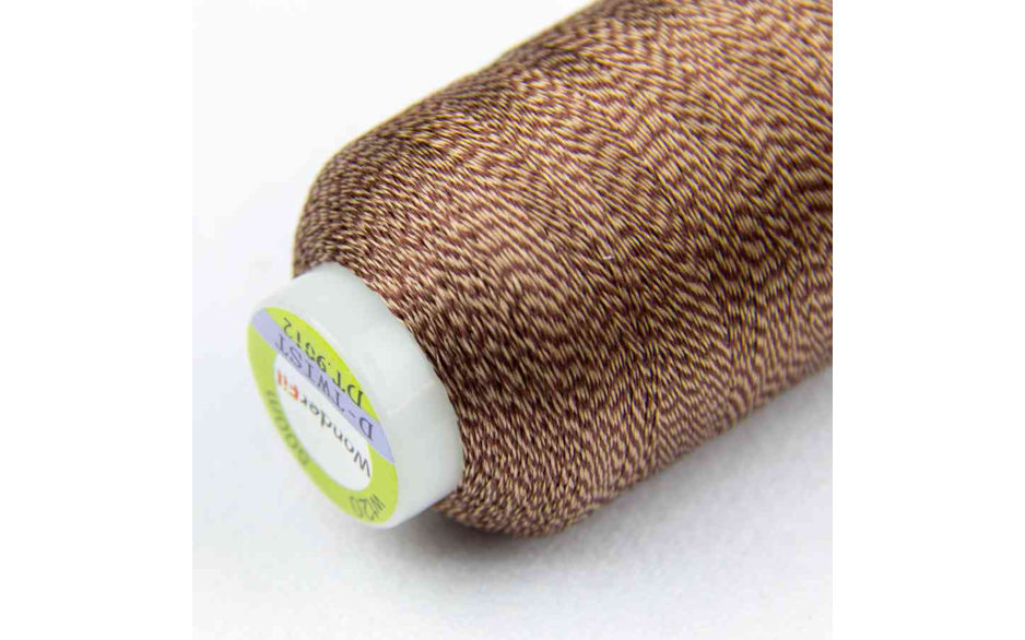 D-Twist™ is een 2-laags rayongaren gemaakt van twee draden dikte 40 die in bijpassende kleuren in elkaar zijn gedraaid tot een draad dikte 20. Dit unieke garen creëert een 3D-effect en is een uitstekende keuze wanneer u textuur of dimensie aan uw project wilt toevoegen. D-Twist™ wordt geleverd in 24 tweekleurige, gedraaide kleuren die een prachtige glans dragen.