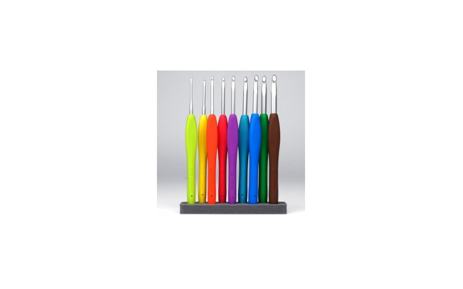 De Clover Amour haaknaalden zijn om verliefd op te worden. Elke dikte heeft zijn eigen kleur. De Clover Amour haaknaalden liggen zeer comfortabel in de hand dankzij de ergonomische kunststof handgreep van aluminium en elastomeer. De Amour haaknaalden van Clover zijn bovendien voorzien van een perfecte haak voor eindeloos haakplezier!