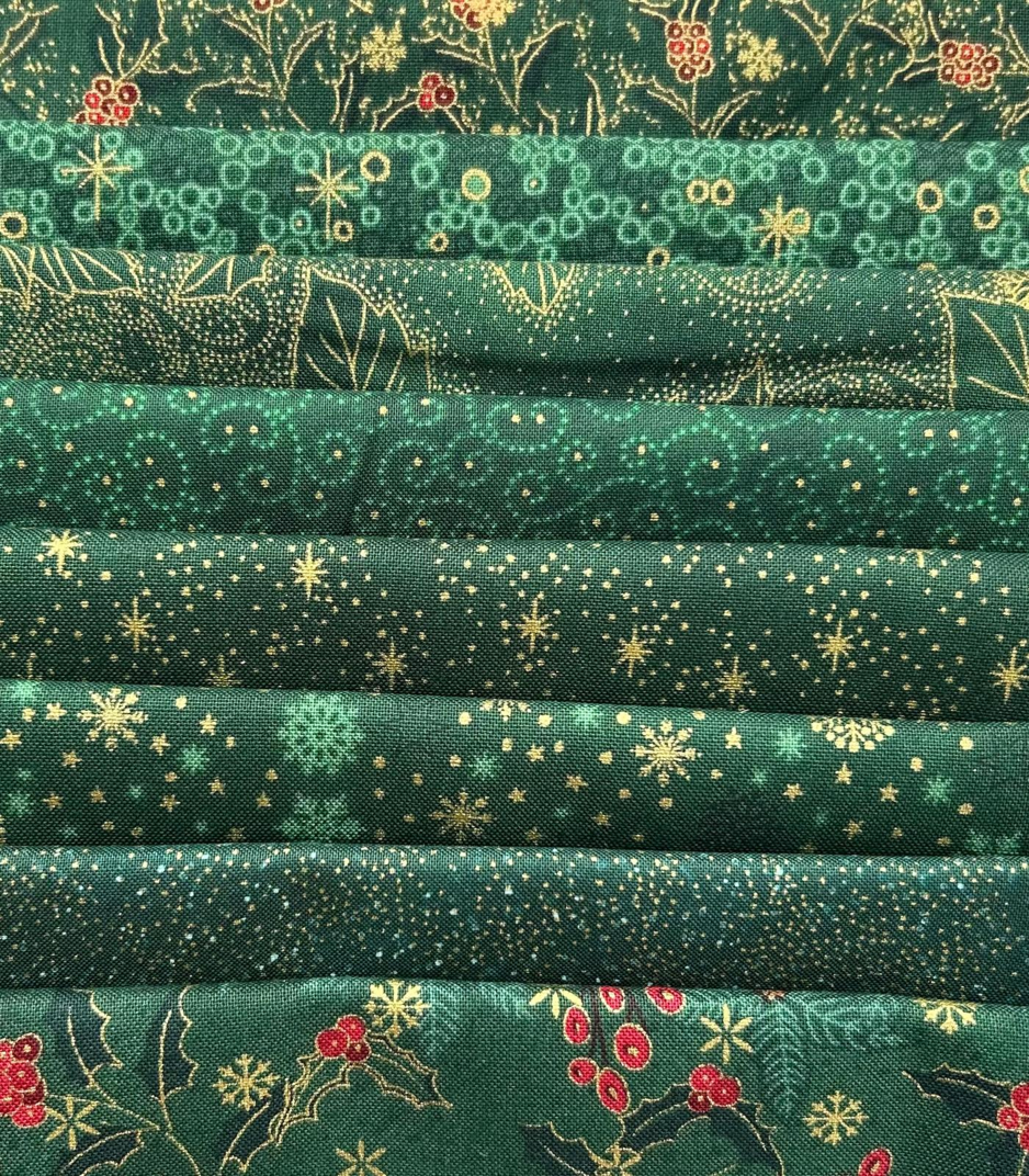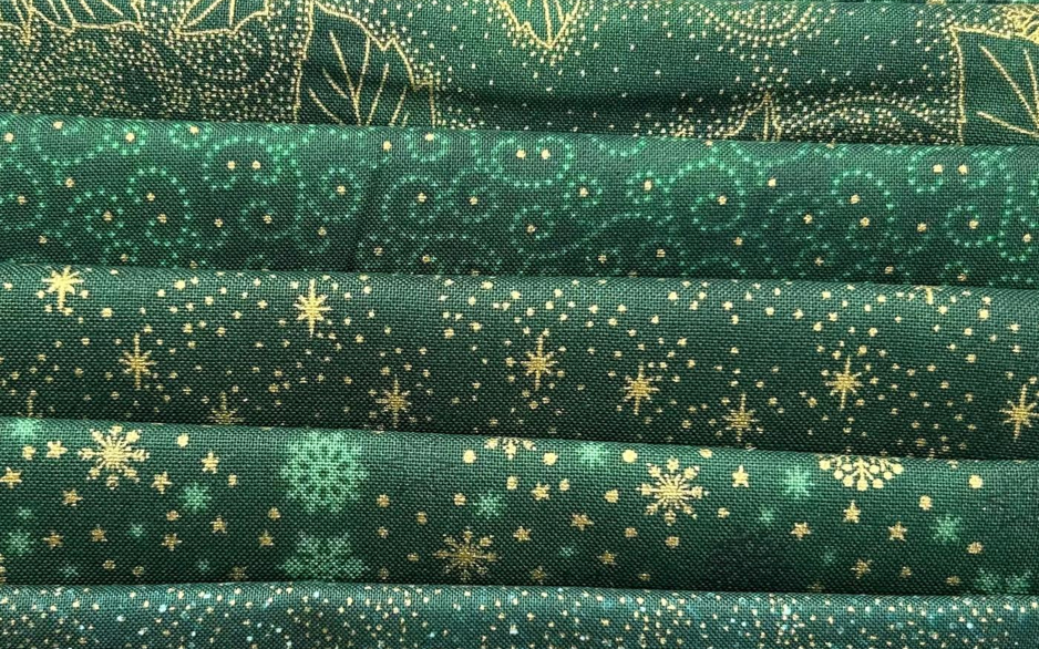 8 verschillende groene kerststoffen,met elk een afmeting van 25x55 cm