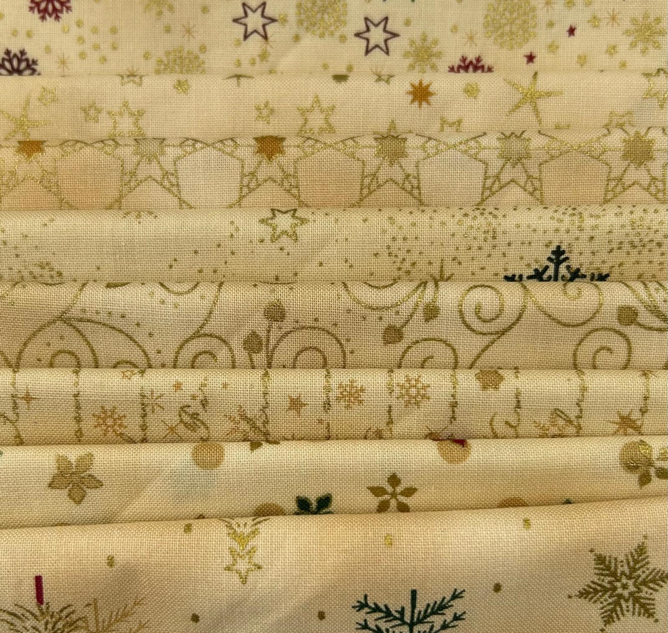 In dit pakketje zitten ze alle 8 en elk stofje heeft een afmeting van 25x55 cm.