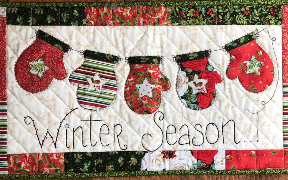 Wat een lief klein en gezellig quiltje heeft Janine Alers voor Quiltshop Leur ontworpen. De afmeting is 30x55 cm.