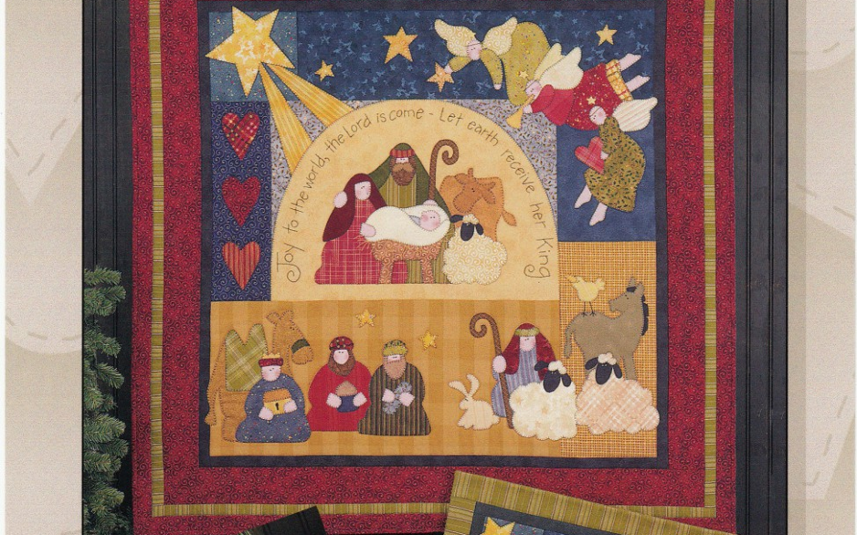 e 'Joy to the World'-quilt, een prachtige vierkante creatie van 40 inch, straalt de geest van het seizoen uit,