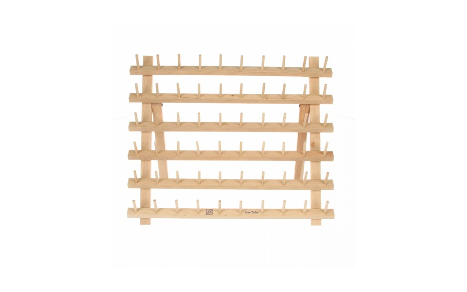 Hoe leuk zou dit in uw hobbykamer staan en zo handig, nooit meer een klosje kwijt en nooit meer het garen in de knoop. Dit houten garenrek met plaats voor 60 klossen, kan aan de muur worden gemonteerd of op een tafelblad met uitklapbare poten staan. Afmetingen: 15,5 x 8inch breed x 13inch hoog