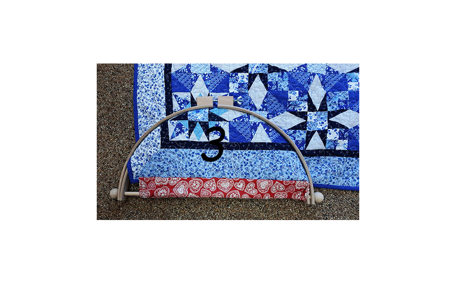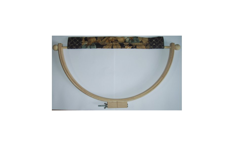 Half ronde quiltring met een afmeting van 45 cm, gemaakt uit een hoge kwaliteit gepolijst berkenhout, voorzien van stelschroef met vleugelmoer. Deze quiltring is ideaal voor het quilten van quiltranden.