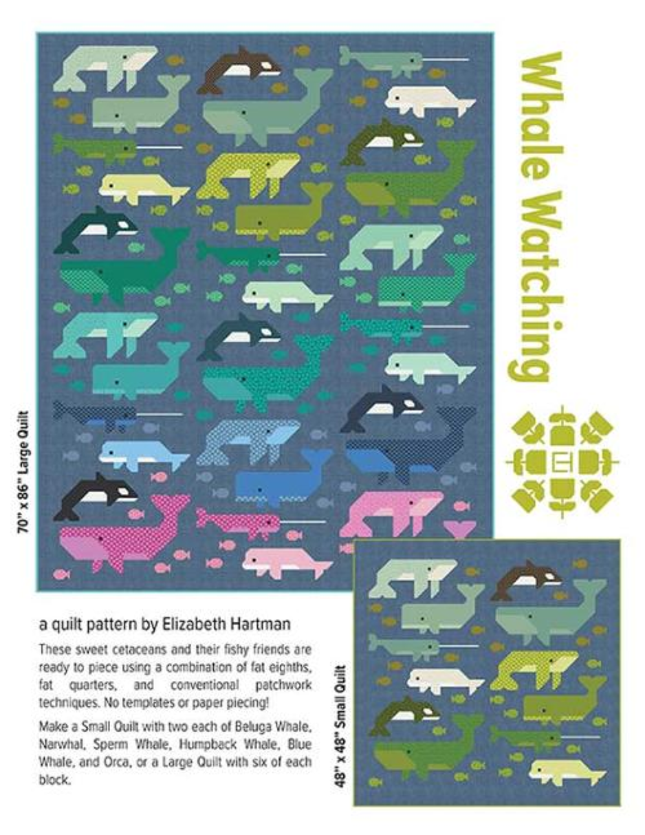 Maak een 48" x 48" quilt met twee blokken van elke walvissoort, of maak een grote quilt met zes blokken per walvis voor een echte blikvanger.