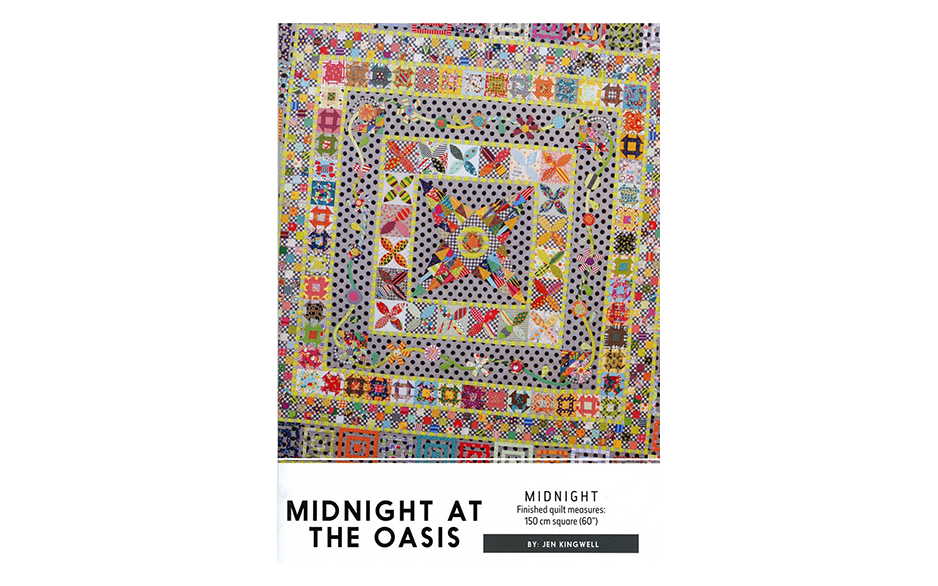Geïnspireerd door haar tijd in de VAE, is deze quilt in medaillonstijl een eclectische mix van stoffen en een verscheidenheid aan technieken, waaronder handstukjes, machinaal stukjes en applique.