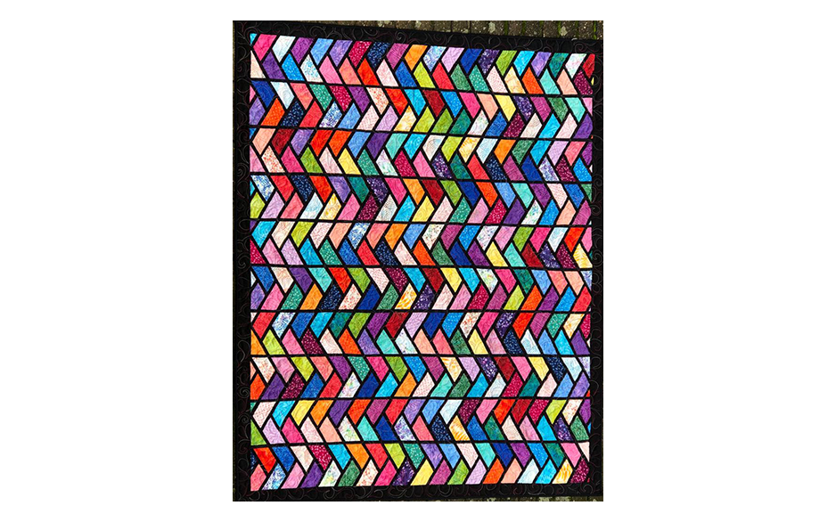 Voor deze quilt heeft u 1 Jelly rol nodig, 250 cm zwarte stof, 45cm afsluitbies, achterkant en vulling.