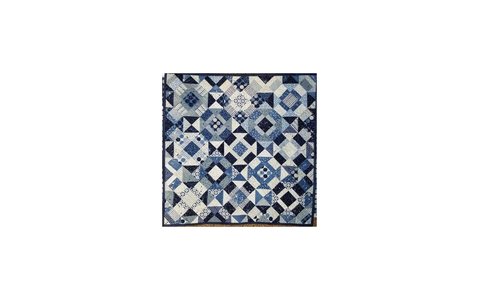 Deze quilt kan zowel met de hand als met de machine gemaakt worden. Afmeting 62 x 62 cm.