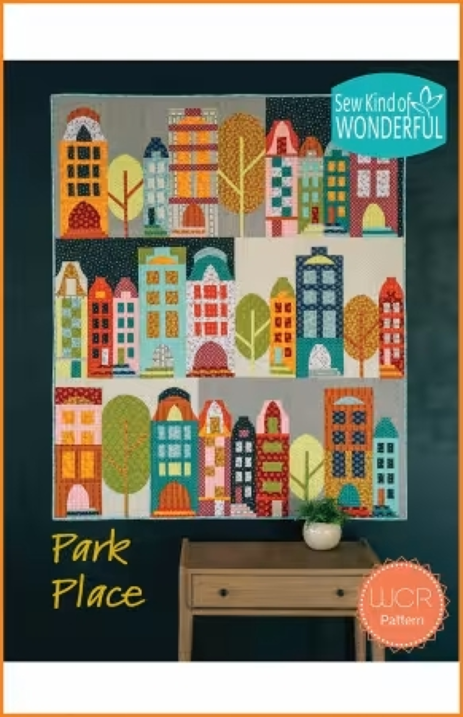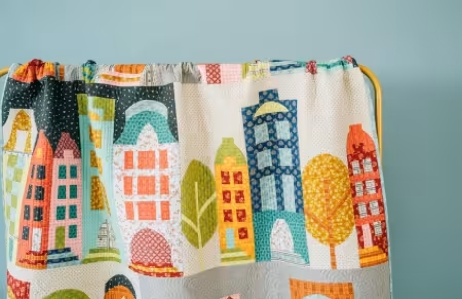 De Park Place Quilt is een gezellig patroon met huisjes, waarin rechte en ronde vormen samen een sfeervol dorp vormen.