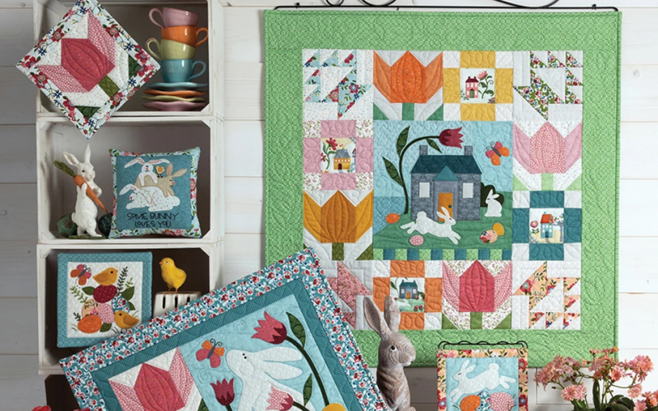 Haal het voorjaar in huis. Deze quilt heeft een afmeting van 21,5 x 28cm.
