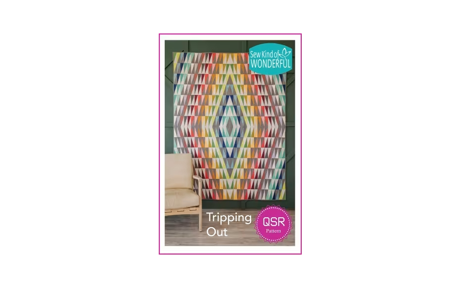 Tripping Out is een frisse nieuwe kijk op het iconische Trip Around the World quiltontwerp, gemaakt met rechthoekige HST-blokken voor een gedurfde en hippe look!