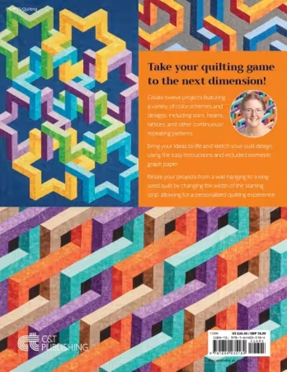 Ontdek ook hoe je zelf een 3D-quilt kunt ontwerpen met behulp van het bijgevoegde isometrische rasterpapier. Het boek combineert creatieve projecten met handige ontwerptips over kleur, stofkeuze en techniek.