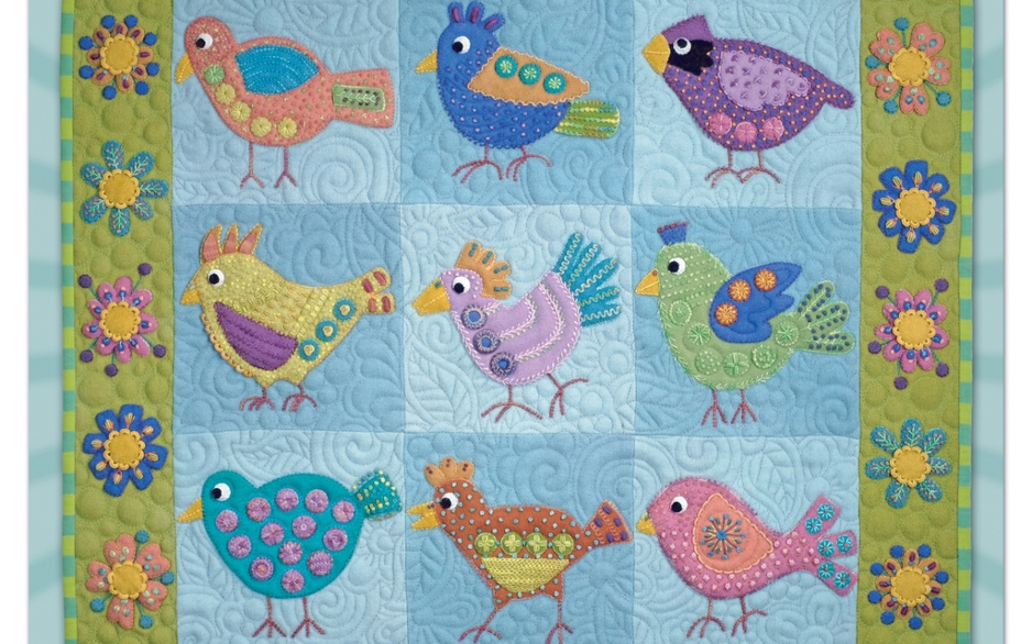 Applicaties van wol, laagjes en borduurquilt/muurhanger.