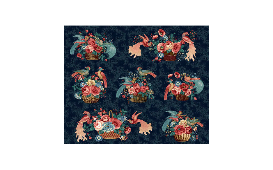 1 panel is 90x110 cm Er staan 7 bloemen manden op 7 panel