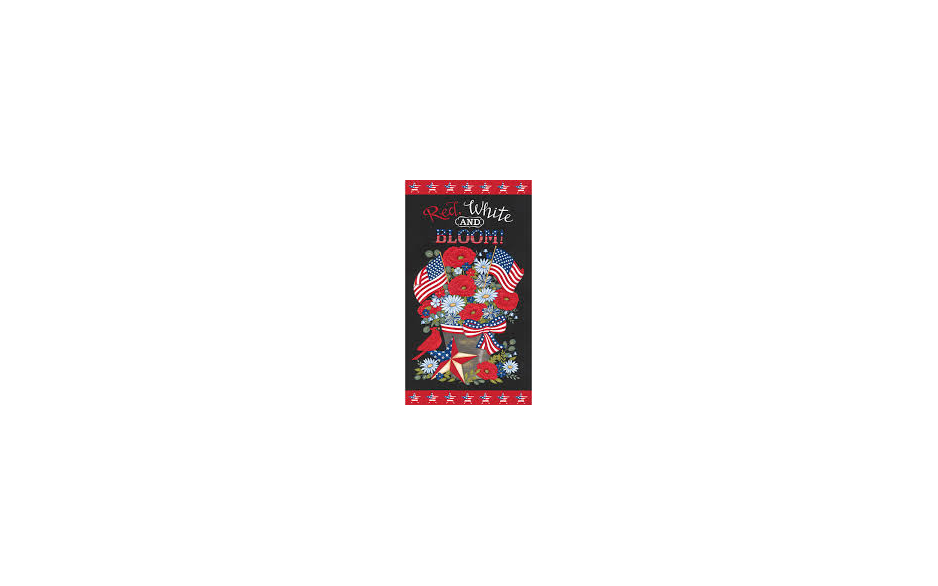 Moda Deb Strain Red White and Bloom 56118 14 panel is een panel met bloemetjes in een emmer van 110 cm hoog en 60 cm breed.
