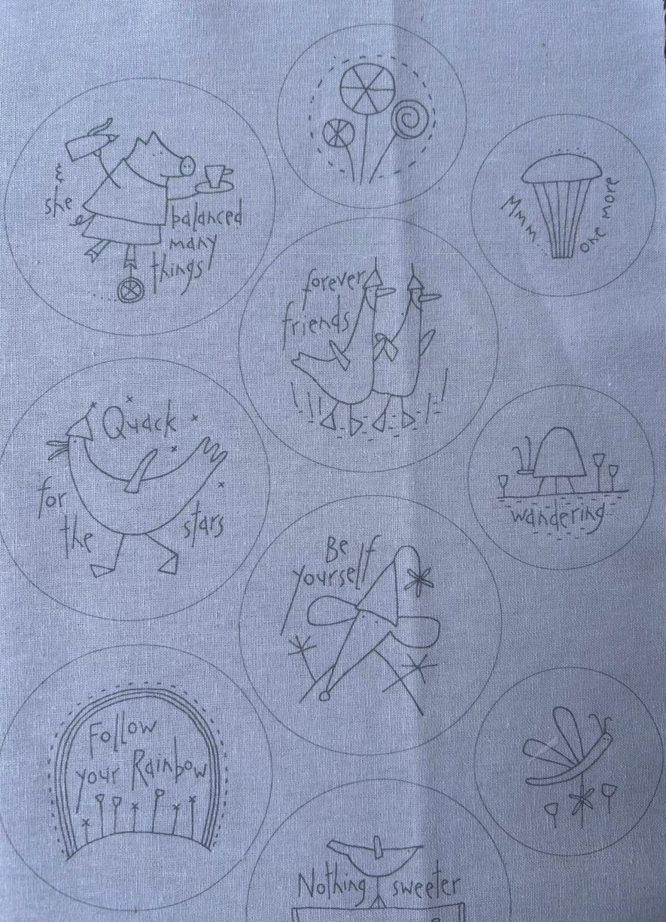 Dit panel wordt gebruikt in de quilt van Anni Downs -Sunshine en Lollipops - Hatched and Patched. Verkrijgbaar bij Quiltshop Leur