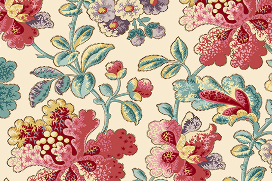 Deze prachtige collectie van Max and Louise heet Fernshaw. Prachtige grote en kleine bloemen en crème, paars, teal, rood. Ook heeft deze serie 3 prachtige randen om uw quilt mee af te werken. Een hele mooie complete serie.