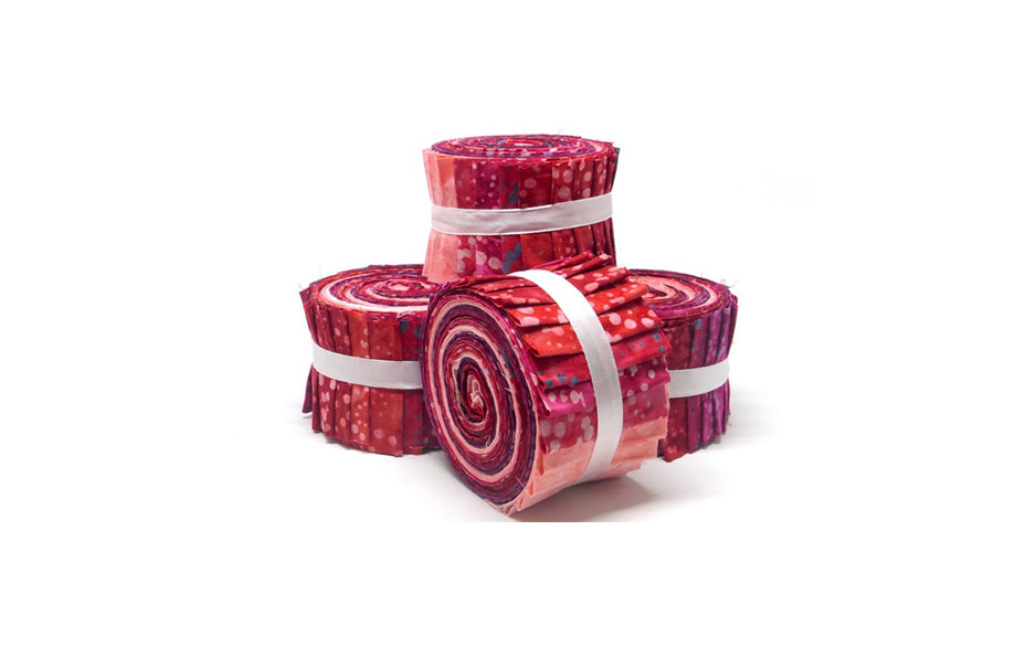 20 rode batik stoffen van 2,5" x 43"