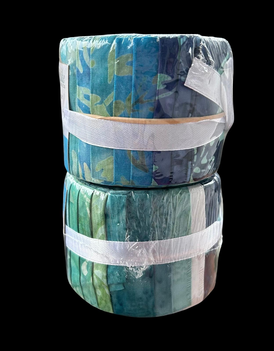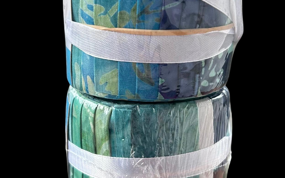 20 blauwe batik stoffen van 2,5" x 43"