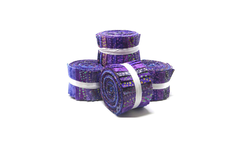 20 paarse batik stoffen van 2,5" x 43"