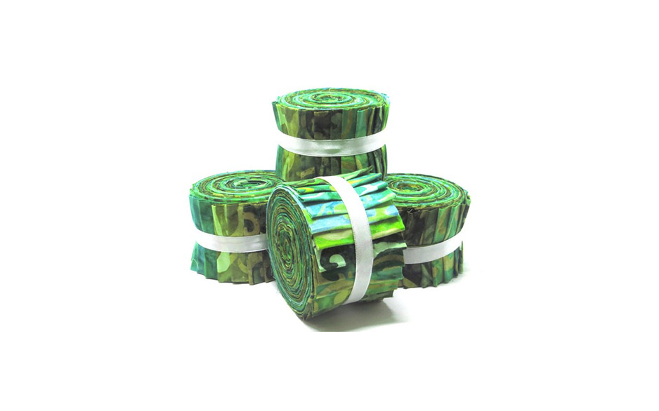 20 groene batik stoffen van 2,5" x 43"