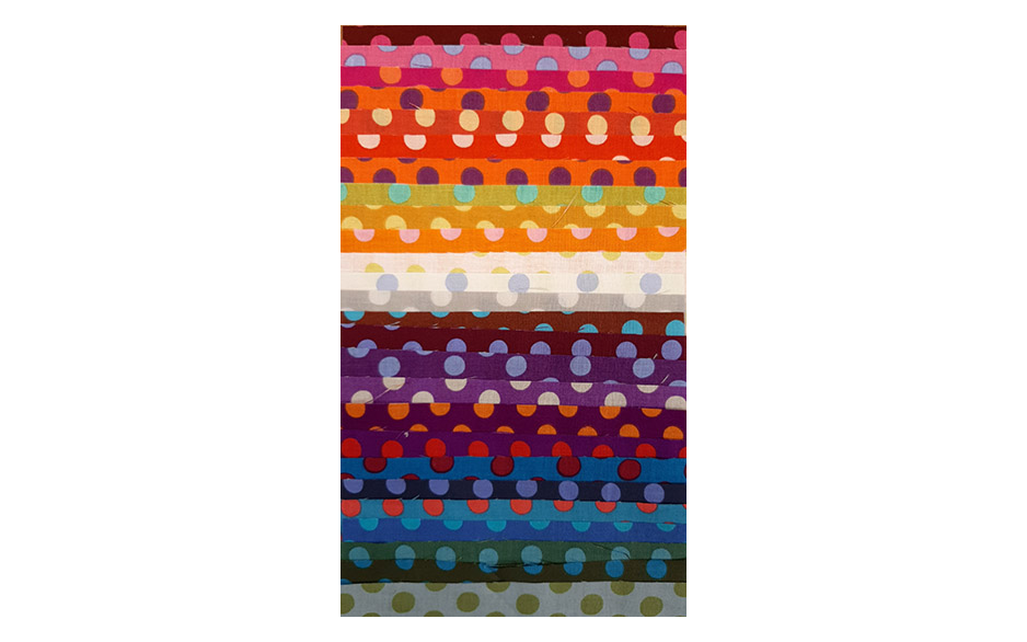 25 stuks van 25x25 cm, deze vrolijke stippen van Kaffe Fassett brengen veel vrolijkheid in een quilt. Deze pakketjes zijn heel fijn om te gebruiken bij hexagonnen projecten, of wanneer u veel kleine stukjes nodig hebt.