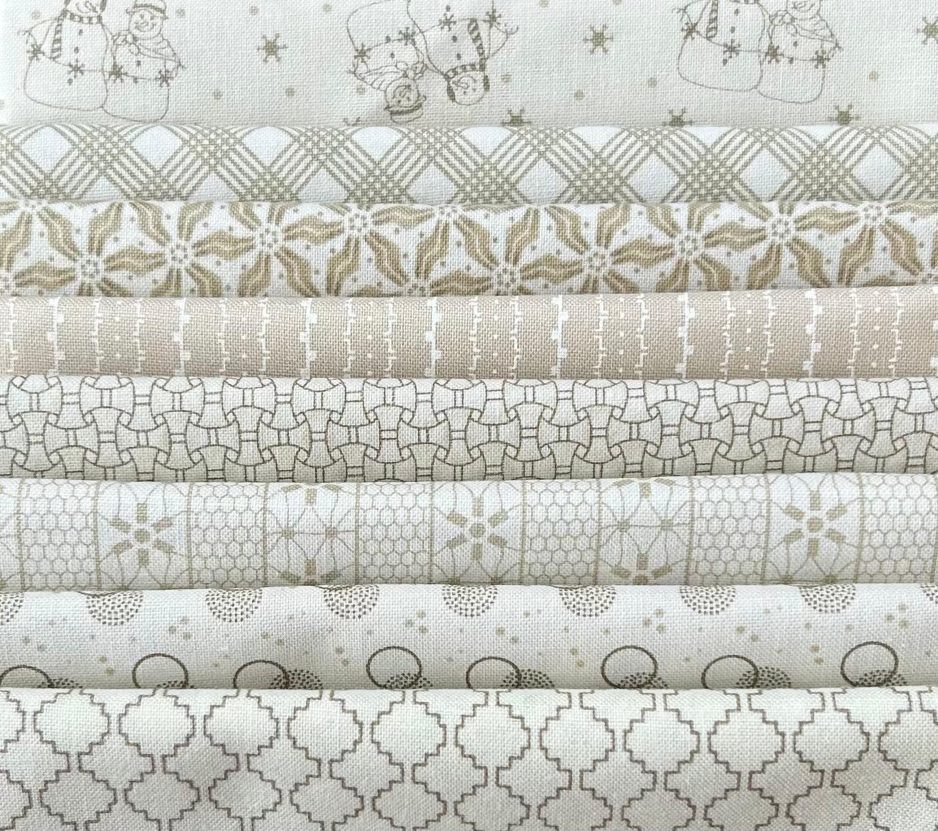 8 verschillende stoffen van the snowman gatherings met elk een afmeting van 25x55 cm.