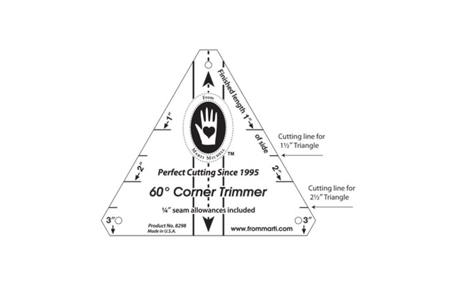 Perfecte 60 graden driehoeken snijden met deze handige template. 1, 2 en 3 inch driehoeken.
