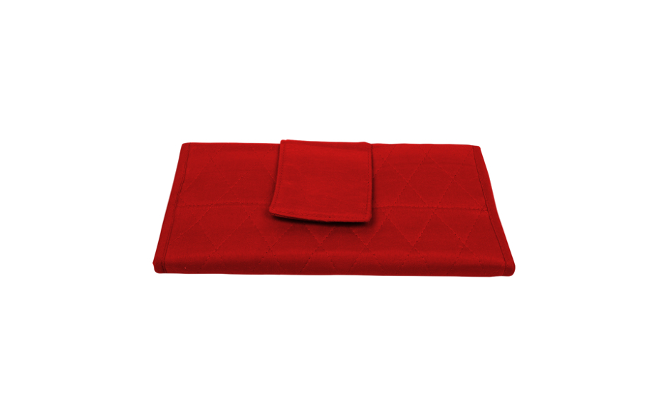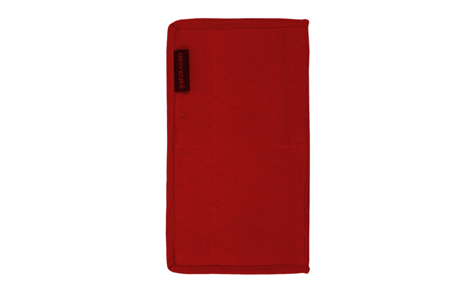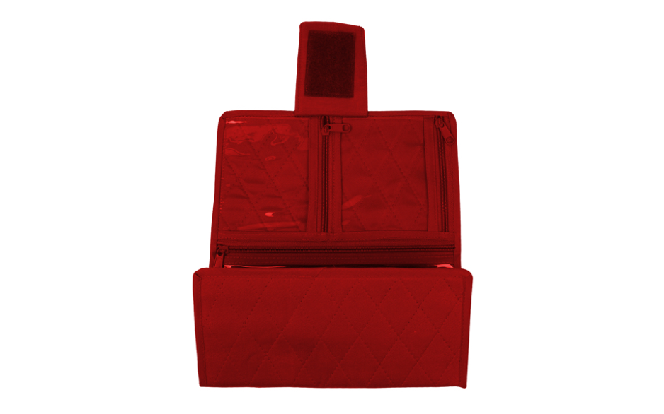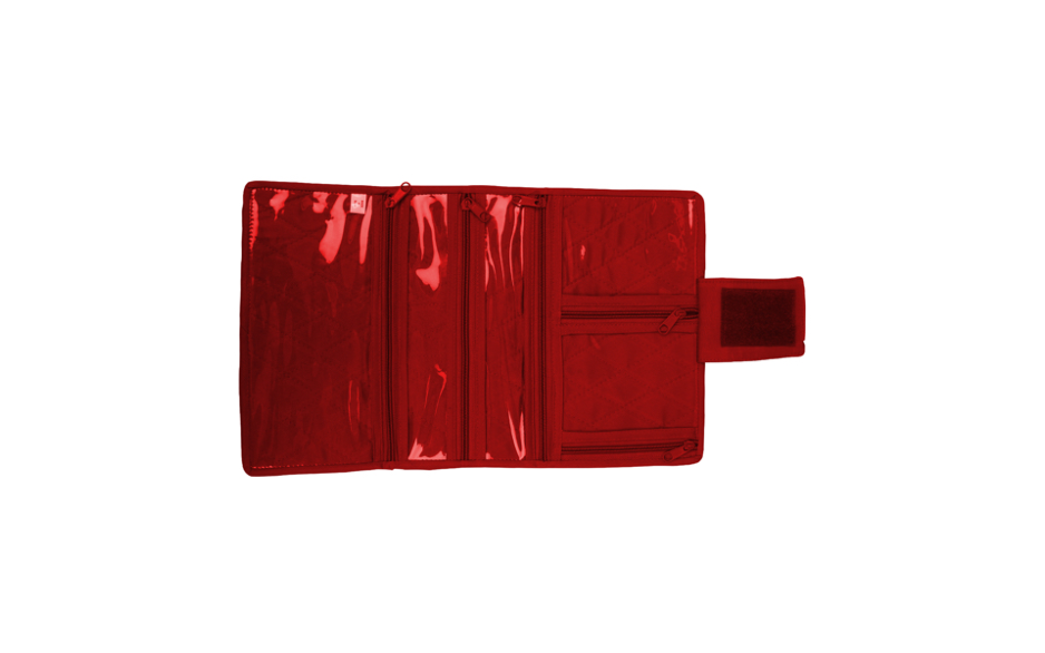 5 doorzichtige vakken die gesloten worden met een rits. Merk Yazzii. Kleur rood.