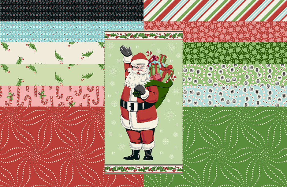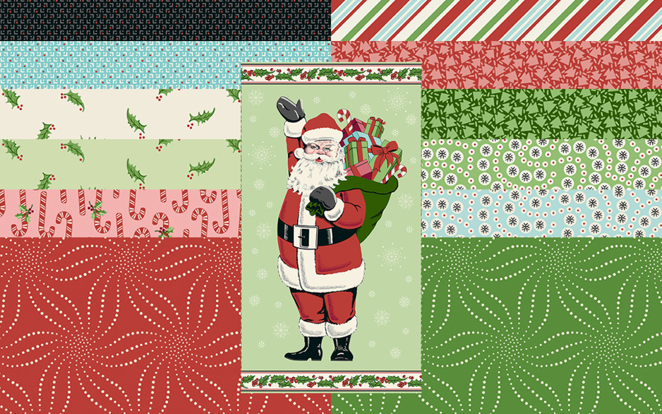 De Retro Hoho stoffen serie bevat niet de standaard kerstkleuren maar heeft een subtieler pallet. Warme groen, rood/roze en blauwe tinten.