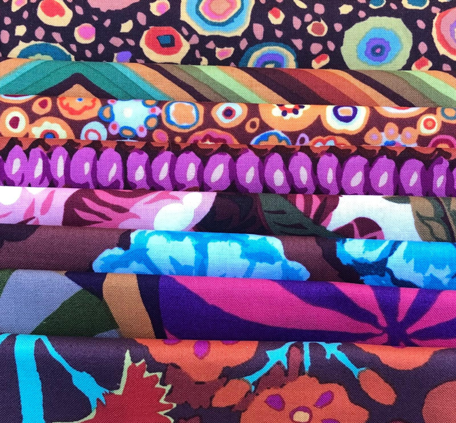 8 verschillende Kaffe Fassett stoffen elke stofje heeft een afmeting van 25x55 cm.