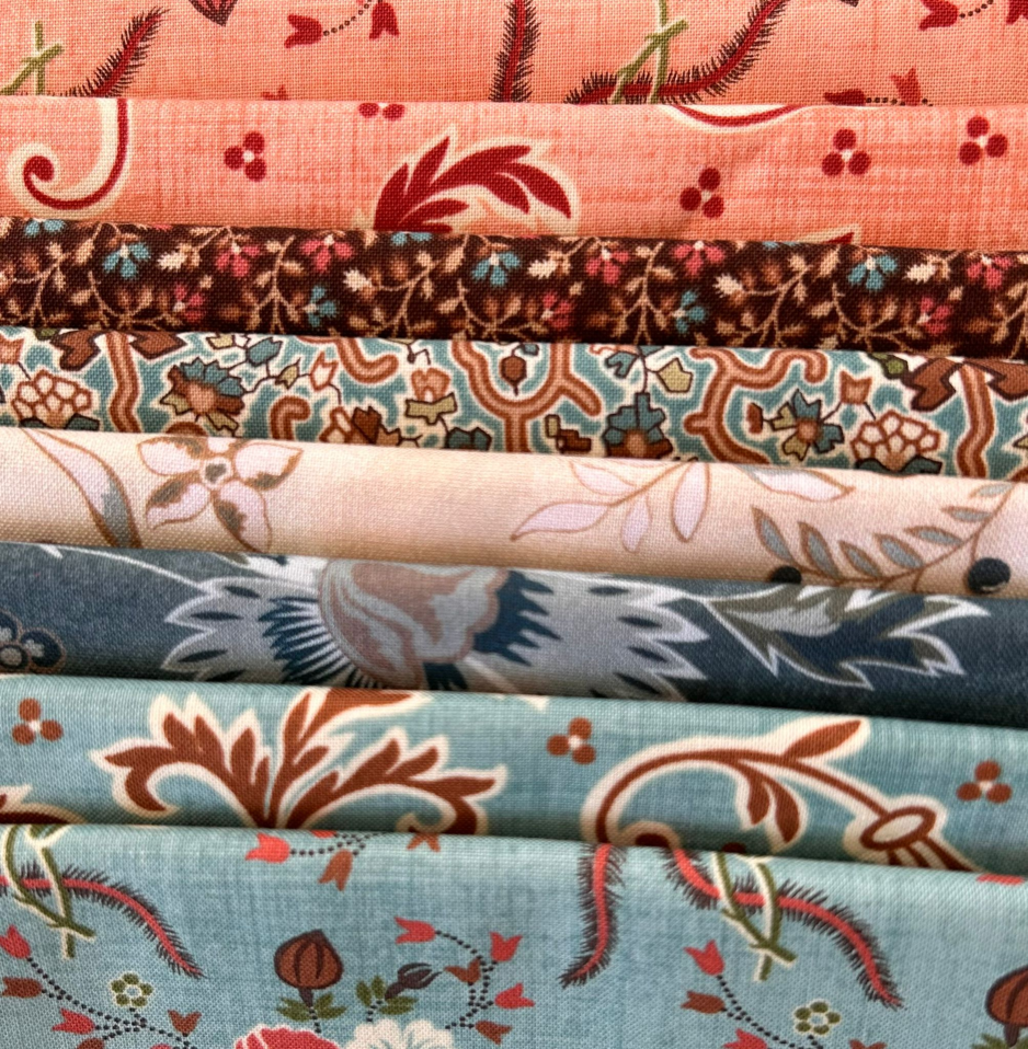 In dit pakketje zitten 8 verschillende stoffen, met elk een afmeting van 25x55 cm.