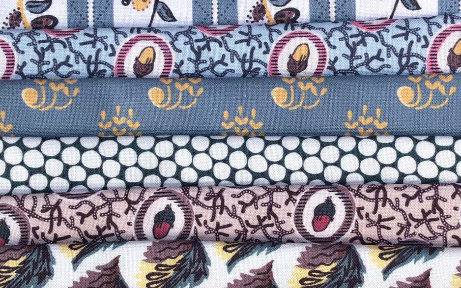 8 verschillende Margaret Mew stoffen elke stofje heeft een afmeting van 25x55 cm.