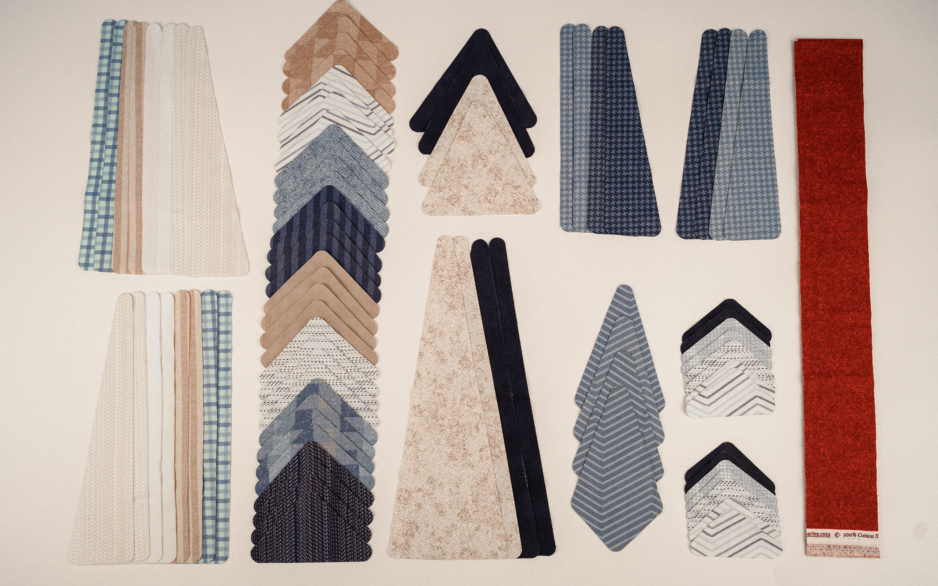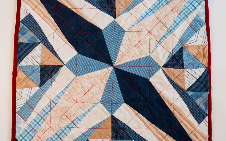 Bij het maken van deze quilt heb ik me laten inspireren door de kerststerren van Swarovski. Van die prachtige gestroomlijnde doorschijnende vormen. Die, als je ze in het licht houdt, nog even een extra verlenging van hun vorm creëren, met het licht dat erop valt van al die lampjes in de kerstbomen. Waardoor de sfeer nog huiselijker wordt en je zin hebt om gezellig samen onder een quilt op de bank te kruipen.