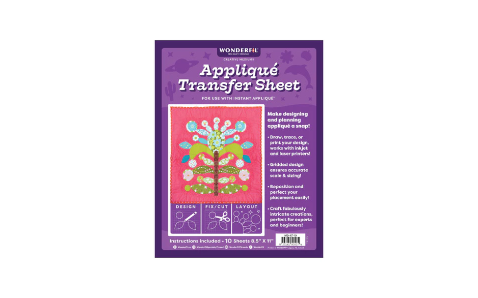 Maak het ontwerpen en plannen van applicaties een fluitje van een cent, met de Appliqué Transfer Sheet! Teken, traceer of print uw ontwerp, het gerasterde ontwerp zorgt voor nauwkeurige schaal en maatvoering! Het werkt geweldig met inkjet- en laserprinters, hobbysnijmachines. Gecombineerd met Instant Appliqué™, de stevige maar veelzijdige lijm laat u uw plaatsing eenvoudig herpositioneren en perfectioneren! Maak fantastisch ingewikkelde creaties, perfect voor experts en beginners!