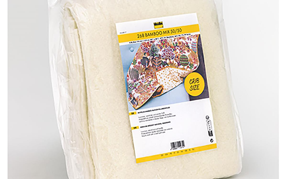 Een zacht middelzwaar volumevlies bestaande uit 50% bamboe en 50% katoen. Gewicht van 145 gram/m², speciaal voor Crib size quiltjes van 114x152cm.