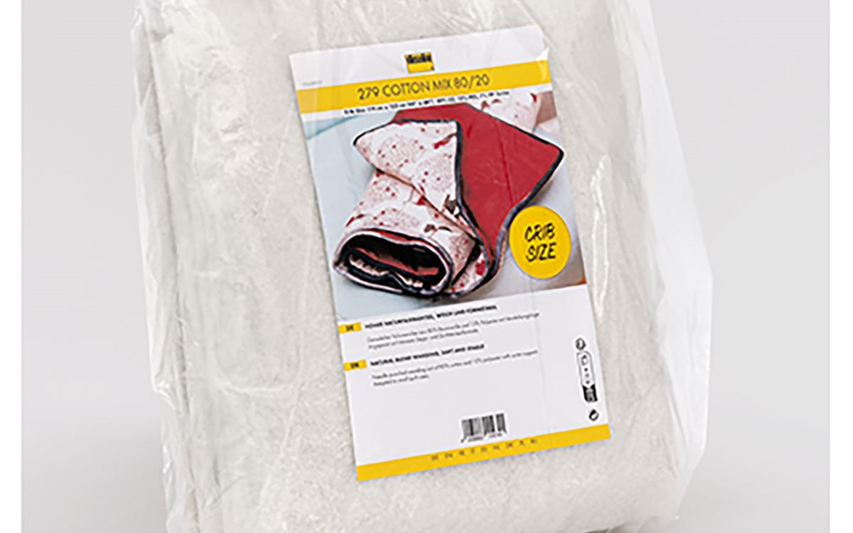 Een zacht middelzwaar volumevlies bestaande uit 80% katoen en 20% polyester. Gewicht van 145 gram/m², speciaal voor Crib size quiltjes van 114x152cm. Geschikt voor alle stoffen.