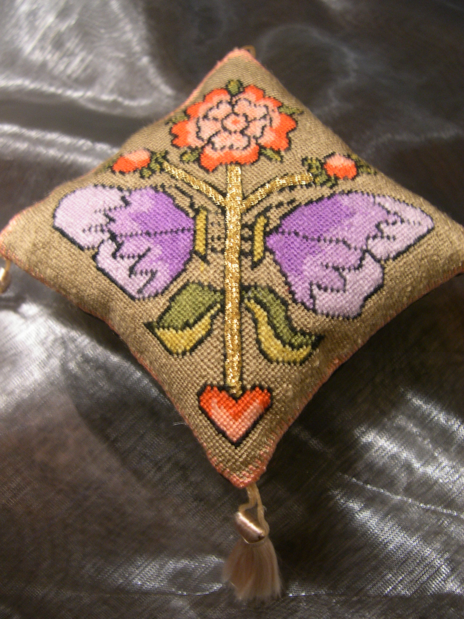 In de tijd van Queen Elizabeth I was het de traditie om elkaar een cadeau te geven met Nieuwjaars dag. Aan de Koningin gaf men dan een wel heel mooi cadeau, dit was vaak een Sweetbag. Een kunstig versierd tasje om geurige kruiden- of handwerk gereedschapjes in te doen. Bij deze laatste Sweetbags behoorde ook vaak een speldenkussentje. Men droeg deze tasjes aan de ceintuur, de z.g. chatelaine. Deze Sweetbags waren geborduurd met goud- en zilverdraad, op luxe stoffen, met vaak koningsgezinde symbolen.