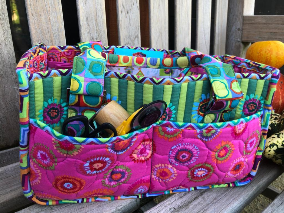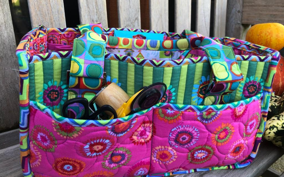 Tasjes, tasjes, tasjes, als quilter kun je er niet genoeg hebben. Al je projectjes, schaartjes, naalden, klosjes, enz kun je opbergen in diverse binnen- en buitenzakken. Deze grote stevige tas is aan de buitenzijde voorzien van een rits voor uw persoonlijke bezittingen. Zelfgemaakte handvatten maken de tas gemakkelijk te dragen. Hoe je het tasje kunt maken leer je tijdens de workshop.Tijdens deze dag ontvangt u: